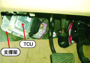 TCU安裝在制動踏板附近(圖3)。拆裝TCU時,必須先斷開點火開關(guān),再斷開蓄電池負(fù)極接線,嚴(yán)禁用手或其他導(dǎo)體接觸TCU端子。