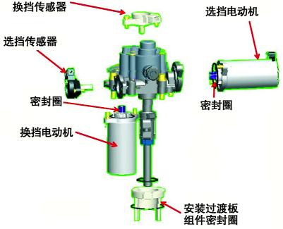 檢查選擋電動機(jī)及選擋傳感器導(dǎo)線連接器的連接情況,均正常,且選擋傳感器內(nèi)部沒有進(jìn)水的痕跡。難道是電動換擋控制器內(nèi)部的機(jī)械故障?將電動換擋控制器拆離變速器后,再將電動換擋控制器的導(dǎo)線連接器重新連接,然后進(jìn)行AMT系統(tǒng)自學(xué)習(xí)及離合器起步初始位置標(biāo)定,發(fā)現(xiàn)選擋電動機(jī)及換擋電動機(jī)均能正常工作,并且變速器故障燈能正常熄滅。由此排除換擋控制器、TCU及相關(guān)線路存在故障的可能,懷疑變速器內(nèi)部機(jī)械部分存在故障。