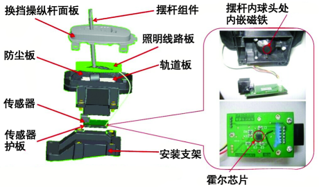 換擋操縱桿的結(jié)構(gòu)如圖6所示。嚴(yán)禁拆卸換擋操縱桿的傳感器護(hù)板和傳感器,否則會導(dǎo)致傳感器輸出電壓錯誤。