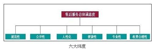 中國(guó)汽車(chē)售后服務(wù)客戶滿意度卡思調(diào)查(CAACS)主要從以下六大緯度來(lái)評(píng)價(jià)汽車(chē)品牌4S店的售后服務(wù)