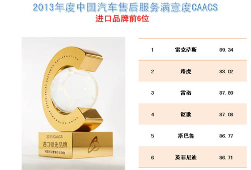 2013年9月27日,2013年度中國汽車售后服務(wù)客戶滿意度調(diào)查(CAACS,簡稱卡思調(diào)查)發(fā)布會(huì)在北京召開。結(jié)果顯示2013年度中國汽車售后服務(wù)客戶滿意度整體得分85.80分,較上一年略有上升。其中自主品牌售后服務(wù)滿意度提升較大,分值從上一年的83.75分上升至85.07分,隨著汽車消費(fèi)理性回歸,自主汽車品牌快速成長,縮減了在技術(shù)、品牌、服務(wù)上差距。但進(jìn)口品牌滿意度卻出現(xiàn)3年來的首次下滑,主要由于專業(yè)性和服務(wù)費(fèi)用合理性方面客戶滿意度下滑。排名方面,雷克薩斯以89.34分位居進(jìn)口品牌榜首,其在人性化、公開性、專業(yè)性方面表現(xiàn)突出。寶馬以87.73分位列合資品牌榜首,在專業(yè)性、人性化方面滿意度有明顯優(yōu)勢。一汽奔騰以87.06分成為自主品牌中滿意度程度最高的品牌。結(jié)果還表明接近35%的4S店客戶在二保過后將會(huì)流失,更多的客戶愿意選擇去綜合修理廠和快修連鎖店。