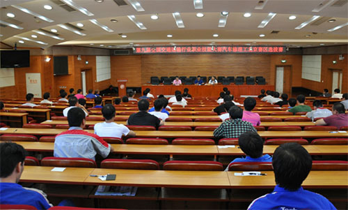 9月19日下午, 2017年中國技能大賽--第九屆全國交通運輸行業(yè)職業(yè)技能大賽汽車維修工北京賽區(qū)選拔賽預(yù)賽(理論考試)在北京交通運輸職業(yè)學(xué)院大興校區(qū)舉行。來自全市各區(qū)的37家企業(yè)的76名汽車修理工報名參加了這次選拔賽。北京市交通委員會運輸管理局機動車維修管理處副處長張磊、北京市交通運輸考試中心科長樊洪亮、北京汽車維修行業(yè)協(xié)會副秘書長連忠政及競賽辦公室工作相關(guān)人員參加了預(yù)賽啟動,并全程監(jiān)考。