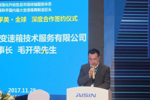 愛信精機(中國)投資有限公司希望把三方合作范圍擴大至售后市場領(lǐng)域,強強聯(lián)手,加快完善終端售后服務(wù)體系的建立和強化,全面企劃升級“愛信產(chǎn)品深度保養(yǎng)中心”的運營及合作模式。同時通過雙方在品牌/渠道/技術(shù)服務(wù)能力等方面的優(yōu)勢實現(xiàn)資源共享,為未來深入探討自動變速箱的保養(yǎng)/維修/再制造領(lǐng)域的全面密切合作打下堅實的基礎(chǔ)。