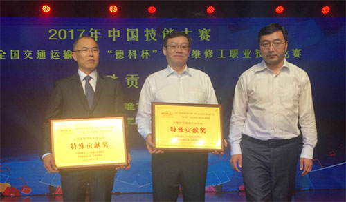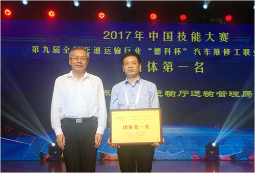 11月17日,2017年中國技能大賽——第九屆全國交通運輸行業(yè)“德科杯”汽車維修工職業(yè)技能競賽在深圳落下帷幕。交通運輸部黨組成員、副部長劉小明,人力資源和社會保障部黨組成員、副部長湯濤,共青團中央書記處書記汪鴻雁,中國海員建設(shè)工會分黨組成員、副主席張景義出席閉幕式。江蘇省交通運輸廳運輸管理局代表隊獲得競賽團體第一名,來自浙江申通時代汽車銷售服務(wù)有限公司的選手江海榮獲個人一等獎。中國汽車維修行業(yè)協(xié)會和上汽通用汽車有限公司榮獲組委會頒發(fā)的“特殊貢獻獎”。