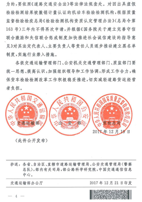 交通運輸部 公安部 質(zhì)檢總局關于加快推進道路貨運車輛檢驗檢測改革工作的通知
