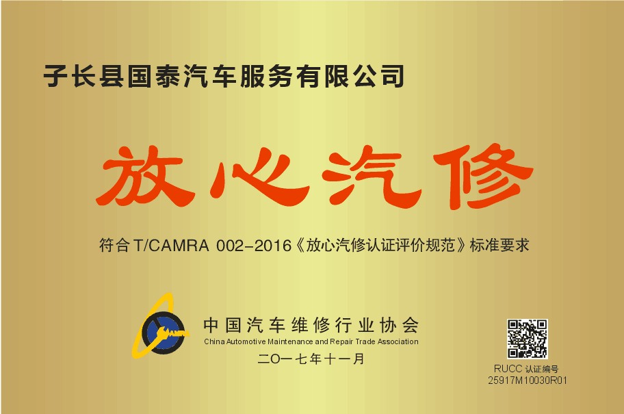 公司先后被子長縣消費者協(xié)會授予“2008年度消費者信得過單位”,陜西省工商行政管理局授予“2009年度陜西省守合同重信用企業(yè)”,子長縣技術(shù)質(zhì)量監(jiān)督局授予“2010年度特種設(shè)備安全使用先進單位”,延安市交通運輸管理處授予“2011年度、2012年度機動車維修先進企業(yè)”,陜西省個體私營企業(yè)協(xié)會授予“2011年度-2015年度光彩之星”,西安大通汽車服務(wù)有限公司2014年度授權(quán)為“獵豹汽車特約服務(wù)站”,成為陜西省三秦汽車配件商會會員、汽修誠信服務(wù)聯(lián)盟會員 ,長春一汽實業(yè)汽車銷售有限公司授權(quán)為“一汽汽車(轎車)特約維修服務(wù)中心”、“一汽備品二級服務(wù)系統(tǒng)”特約經(jīng)銷商。