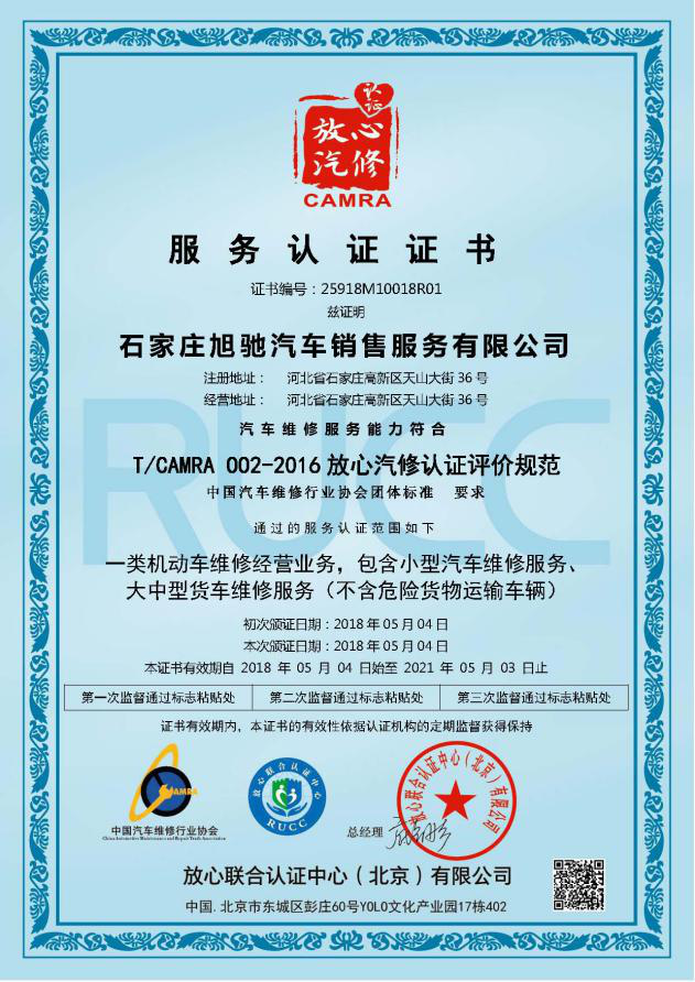 石家莊旭馳汽車銷售服務(wù)有限公司(簡稱:旭馳汽修)。公司成立于1991年,位于石家莊市高新技術(shù)開發(fā)區(qū),天山大街與307國道交口處,西鄰石家莊高鐵東站,占地5000余平方米,是石家莊現(xiàn)有規(guī)模最大的綜合型汽車服務(wù)企業(yè)之一,連續(xù)多年被評為全國汽車服務(wù)行業(yè)誠信單位,消費維權(quán)工作先進(jìn)單位,河北省維修(售后)4星級服務(wù)示范單位,創(chuàng)文明城市示范單位等。 單位經(jīng)營范圍涵蓋汽車銷售、維修保養(yǎng)、鈑金噴漆、美容裝飾、輪胎項目、保險代理、事故處理、拖車救援等多項業(yè)務(wù),是中國平安車主服務(wù)中心,20家保險公司“透明修車”維修服務(wù)四星網(wǎng)點。 旭馳汽修現(xiàn)有維修車間6個,包括普通機電維修車間、高端車機電維修車間、事故車輛鈑金車間、事故車輛噴漆車間、車輛精洗車間以及美容無塵車間,除此以外還備有維修用地溝2個,以方便大型車輛的維修養(yǎng)護。各車間涵蓋維修工位共計50個,每個車間都配備有齊全的維修檢測設(shè)備,包括普通車型檢測設(shè)備15臺,高端車專用檢測設(shè)備10臺,3D四輪定位儀2臺,雙杠液壓舉升機20臺,車身事故校正儀2臺,烤漆房3間,扒胎機1臺,動平衡機1臺,洗車設(shè)備3臺,精洗設(shè)備1套,臭氧消毒機1臺,發(fā)動機吊裝設(shè)備3臺等等,齊全的設(shè)備可同時支持維修20輛左右車輛,提高維修檢測水平的同時也大大縮短了車主維修等待時間。 旭馳汽修是石家莊唯一一家汽車空調(diào)服務(wù)站,擁有專業(yè)的空調(diào)維修體系,和完整的汽車空調(diào)維修工藝。2017年9月27日公司懷特分店——南風(fēng)汽車美容中心正式開業(yè)。分店的開業(yè),標(biāo)志著公司業(yè)務(wù)能力更加快速的拓展,更好更便捷的服務(wù)客戶。