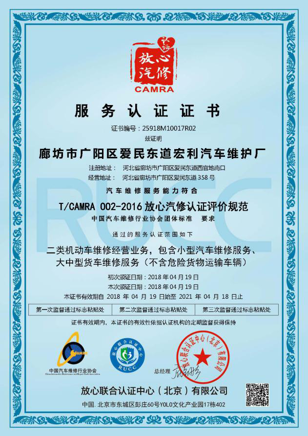 我廠本著規(guī)范操作、保證質(zhì)量,配件無假貨,修理無返修的原則,按規(guī)定簽發(fā)汽車維修出場合格證,及時受理客戶投訴,承擔(dān)質(zhì)量保證責(zé)任。并保證半徑以50公里范圍的免費救援,和積極的實行上門服務(wù)項目,并且提供對合同單位的優(yōu)先服務(wù)。近幾年來我廠獲得許多榮譽,2016年被譽為全國汽修行業(yè)百強誠信企業(yè),獲得星至寶“新星店”稱號,獲得河北5A級售后維修星級服務(wù)示范店。