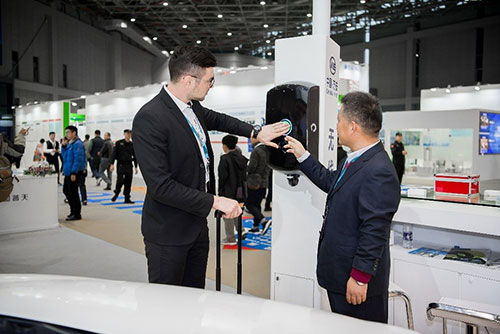 2017年Automechanika Shanghai 展會(huì)現(xiàn)場(chǎng),中國汽車制造商為觀眾展示 “ Plugless” 無線充電系統(tǒng)