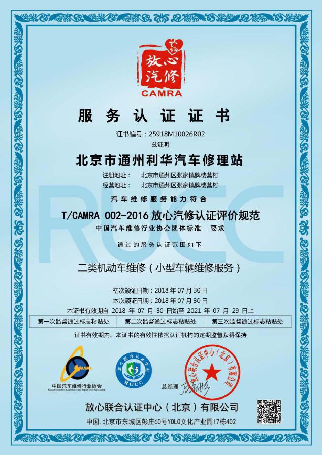北京市通州利華汽車(chē)修理站總經(jīng)理劉艷輝,很榮幸能與放心汽修認(rèn)證公司深度合作,通過(guò)放心汽修認(rèn)證專(zhuān)家的駐廠檢查、監(jiān)督,提升企業(yè)的服務(wù)流程和標(biāo)準(zhǔn),歸范企業(yè)的運(yùn)行和管理,最終為客戶(hù)提供高品質(zhì)、精工藝的服務(wù)讓客戶(hù)省心、安心、放心,讓客戶(hù)用車(chē)無(wú)憂(yōu)!愿與放心汽修認(rèn)證中心一起根據(jù)客戶(hù)需求不斷提升認(rèn)證標(biāo)準(zhǔn)共同締造一個(gè)值得客戶(hù)信賴(lài)、受人尊重、國(guó)際化標(biāo)準(zhǔn)的汽車(chē)服務(wù)連鎖品牌,引領(lǐng)行業(yè)的發(fā)展,造??蛻?hù)。